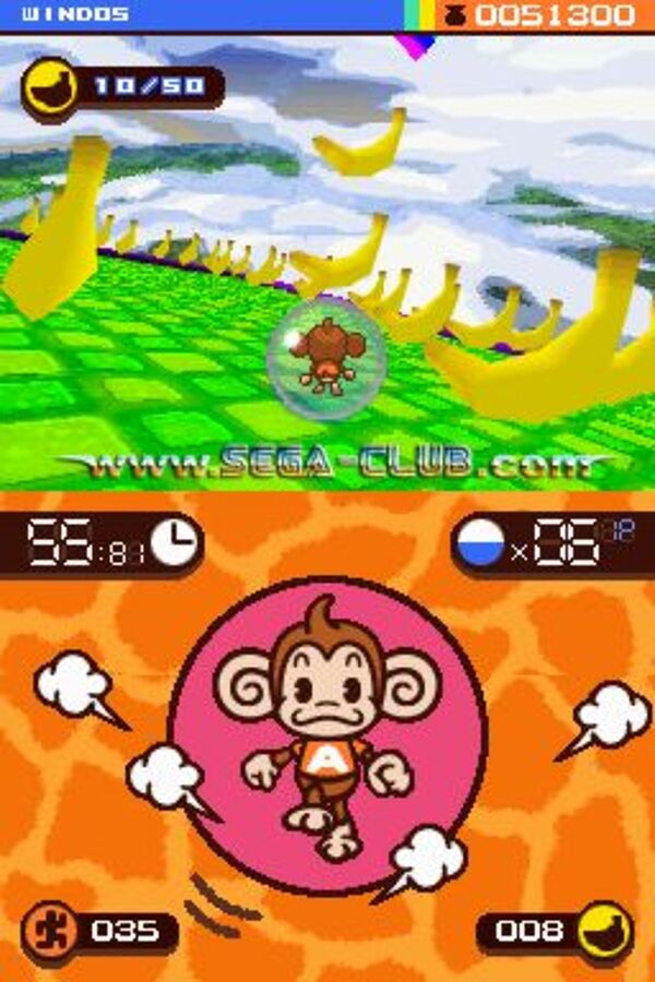 “Die Spielidee und das Spielprinzip der Super Monkey Ball-Reihe bieten sich perfekt für die Steuerung über das Touch Screen des Nintendo DS an,” so Mike Hayes, Präsident und COO von SEGA Europe. “Und bei dem hohen Bekanntheits- und Beliebtheitsgrad dieses Franchise unter den Nintendo-Spielern freuen wir uns natürlich ganz besonders, jetzt auch eine exklusiv auf den DS zugeschnittene Variante anbieten zu können.“ Hauptziel der Super Monkey Ball-Spiele ist, die mit einem Affen gefüllte Kugel so schnell wie möglich per Control-Pad oder dem DS-Stylus ins Ziel zu bugsieren. Wem dazu noch die nötige Übung und Balance fehlt, kann sich im Practice-Modus das erforderliche Fingerspitzen- und Stylus-Gefühl aneignen!