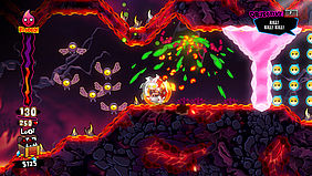 Ash, der Hasen-Hauptdarsteller, ist trotz aller Waffen allerdings kein Killer. Und auch kein Dieb. Naja, eigentlich nicht. Aus rechtlichen Gründen können wir das nicht versprechen. Es ist nicht seine Schuld, dass er auf seinem Weg durch die Hölle die ganze Beute in Form von Gold und Diamanten einsammeln muss – und die Seelen der besiegten Monster auch gleich mit einkassiert. Er muss es einfach tun. Weil Ash nur damit seine Fähigkeiten ausbaut und stärker wird. Und je stärker er ist… desto mehr Comic-Gewalt entlädt sich auf dem Bildschirm, desto schneller penetriert der Bohrer (wäh, wir wissen genau an was Sie eben gedacht haben) die Felshindernisse und desto spektakulärer schnetzelt sich das Killerrad durch die knallbunte Welt. Wer alles sammelt, der macht a) alles richtig, schafft b) die 100% und sieht dabei c) noch richtig gut aus. Und darum geht’s ja am Ende immer.