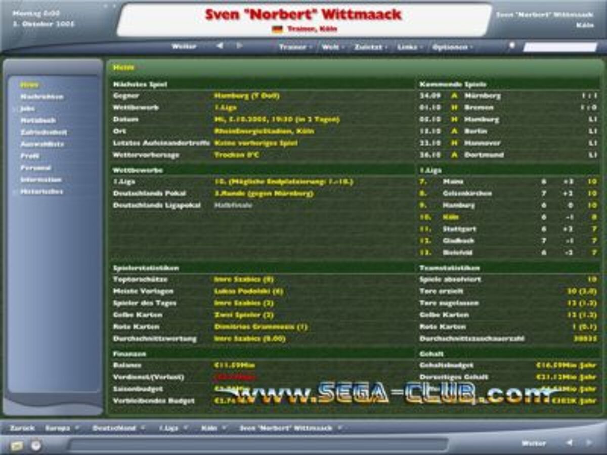 Alle wichtigen Infos auf einen Blick: Tabellenplatz, Finanzlage, Teamstatistiken sowie anstehende Termine und Aufgaben.