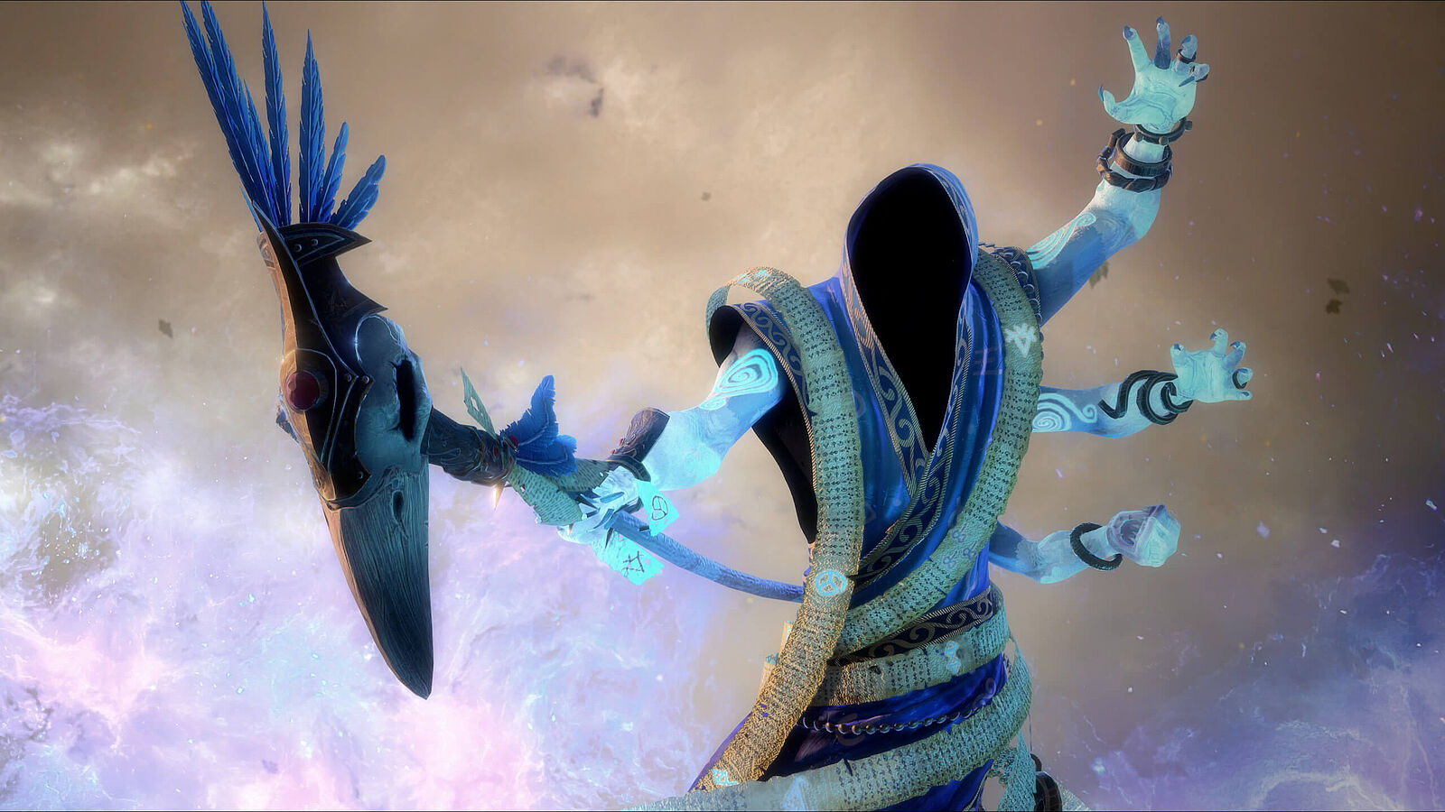 - Großer Mondvogel: Ein furchterregender Kämpfer, der sich sowohl in der Luft als auch am Boden wohlfühlt. Der Große Mondvogel kann durch seine Flügelschläge einen Mahlstrom aus Mondfeuer erzeugen und damit Feinde in seinem Radius verletzen. Außerdem fungiert er als Reittier für die Astromanten, was ihnen eine größere Beweglichkeit verleiht, um Zauber auf ihre Feinde regnen zu lassen.