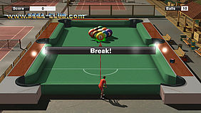 Ein fieser Wissenschaftler hat sie geschrumpft! (eigentlich hat er nur einen riesigen Billardtisch bauen lassen – klingt aber nicht so spannend, oder?) Versuchen Sie, die riesigen Kugeln einzulochen. Bewegen Sie zunächst den Spieler nach links oder rechts, und legen Sie anschließend den Schusswinkel fest.