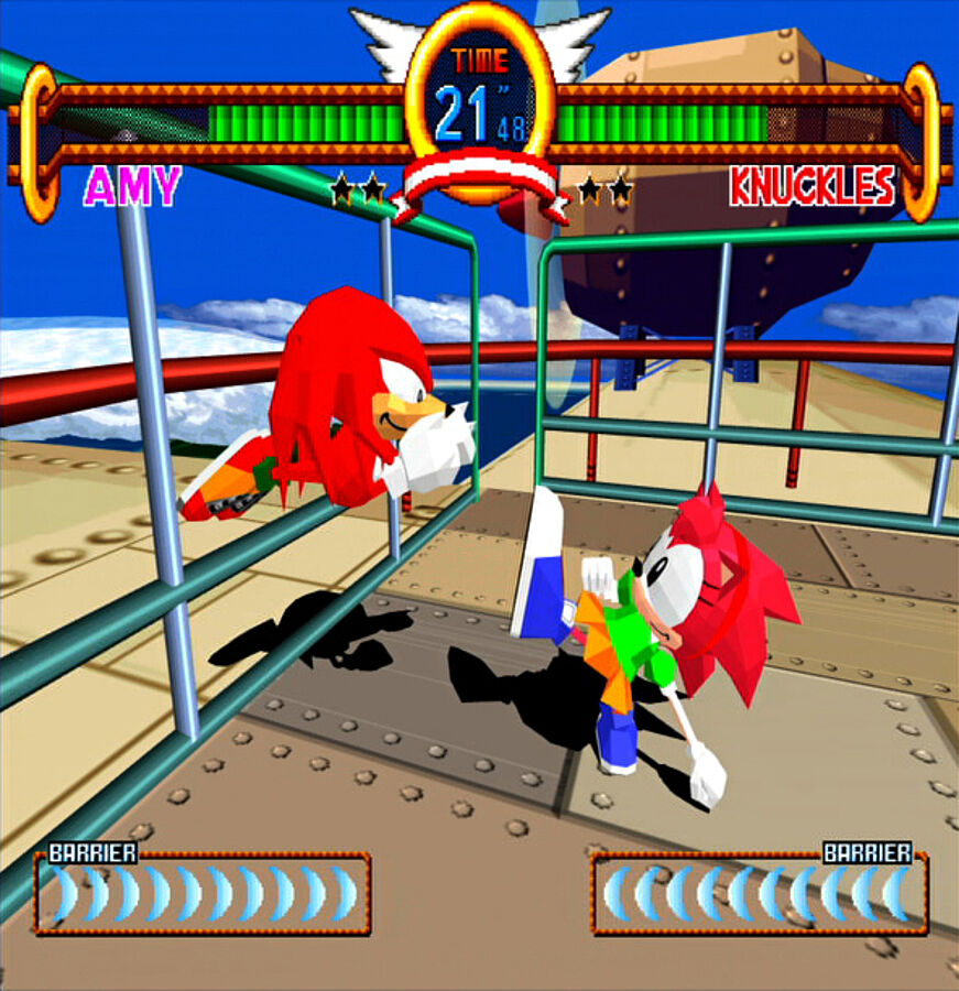 1996 veröffentlichte SEGA das ebenfalls von AM2 entwickelte Sonic the Fighters – in dem sich Sonic und seine Freunde (und Feinde) erstmals in Faustkämpfen versuchen durften. Trotz des farbenfrohen Looks und dem Auftritt von liebenswerten Spielfiguren wie Sonic, Tails oder Amy Rose setzt auch Sonic the Fighters auf die von AM2 sehr gut ausbalancierte Spielmechanik. Und wo sonst bekommt man schon einmal die Gelegenheit, Metal Sonic in einen Faustkampf mit Dr. Robotnik oder Knuckles zu schicken?