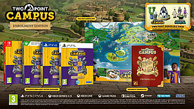 Auf sein Universitätsabenteuer kann man sich bereits jetzt vorbereiten, indem man Two Point Campus jetzt vorbestellst, um einige exklusive Bonusgegenstände im Spiel zu erhalten, die den eigenen Campus zum Start aufpeppen werden. Schmücken Sie Ihre Gärten mit einem U-förmigen Formschnittbusch, stillt seinen Wissensdurst am Brunnen des Wissens und holen sich seine ganz persönliche Perle der Weisheit. Wer Two Point Hospital besitzt und Two Point Campus vorbestellst, der darf sich über seinen Glückstag freuen, denn Besitzer des Hospitals erhalten einige tolle kostenlose Ingame-Gegenstände für Two Point Hospital, wie eine elegante Varsity-Jacke und eine Rüstung. Wer ein physisches Exemplar von Two Point Campus kauft, erhält die „Enrolment Edition“, die eine tolle ausklappbare Campus-Karte, einen schicken Universitätsprospekt und eine exklusive Verpackung mit sich bringt.