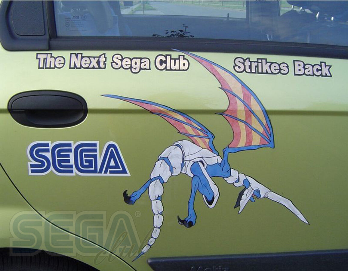 Zu dem Zeitpunkt war der Club zwar noch gar nicht online, doch ich war von den geäußerten Ideen und dem geplanten Konzept derart begeistert, dass ich mich nach positivem Zuspruch dazu entschloss, sowohl die Adresse, als auch den Leitspruch des SEGA-Club „The Next SEGA-Club Strikes Back“ als Aufkleber herzustellen und fortan als Werbung auf meinem Auto anzubringen.