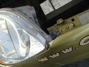 Der Unfallgegner drückte mir noch seine Visitenkarte in die Hand mit der er sich als Mitarbeiter der Provinzial-Versicherung zu erkennen gab, als mich meine Mutter noch rechtzeitig zum Arzttermin bringen konnte, den ich nun noch um einiges nötiger hatte als sowieso schon. Mein Herz blutete, als ich mein kleines Auto so verbeult am Straßenrand stehen lassen musste, wo es bereist erste gaffende Blicke auf sich zog. Zwischenzeitlich gab ich auch AstroTiger Bescheid, dass ich nicht mehr nach Hannover kommen und ihm beim Umzug helfen konnte. Erst am späten Nachmittag konnten wir den Kleinen vom Straßenrand wegholen, wobei mein Vater mit ihm in die Werkstatt fuhr. Ich selbst war noch zu zittrig um selber am Steuer zu sitzen. Die Diagnose war erschütternd: Eine Reparatur lohnte nicht da sich sie gesamte Front verkürzt hatte. Dabei wurden die Scheinwerfer aus der Verankerung gerissen, die Motoraufhängung verzogen, die Seitenteile nach außen gebeult und die Motorhaube nach oben weg geknickt. Somit stand fest, dass ich an diesem 17.09.2010 mein geliebtes SEGA-Club Car verloren hatte. In den nächsten Tagen entfernte ich alle Aufkleber und elektrischen Extras und bereitete mich schweren Herzens auf den endgültigen Abschied vor.