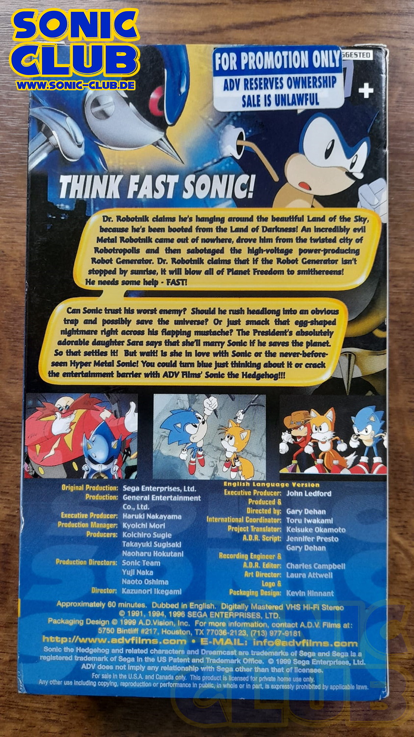 Übrigens: Neben einem Trailer von ADV Films auf DVD, gibt es auch eine Vorschau der japanischen VHS-Kassetten auf dem Saturn Spiel Sonic Jam, das die beiden Episoden auch in der Sonic-Historik erwähnt. Dabei muss man sich den kleinen Film jedoch nicht erst freispielen, sondern kann ihn sich gleich zusammen mit anderen Kurzfilmen und Werbungen im spieleigenen Theater anschauen.