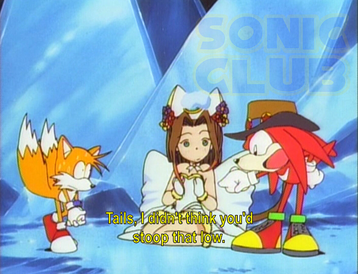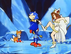 Armer Tails! Ihm ist die Situation sichtlich unangenehm und peinlich! Nach einem Sturz purzeln er, Knuckles und Sara einen Berghang hinab und landen gemeinsam am Fuße eines Gletschers. Doch noch bevor Tails selbst etwas davon bemerkt, macht ihn Knuckles auf seine ungünstige Landeposition aufmerksam. Da klammert sich das junge Füchslein doch glatt an Saras Oberweite. Das war selbstverständlich ein Versehen und Tails entschuldigt sich schämend mit ehrfürchtiger Stimme. Doch Knuckles rügt ihn gleich auf sein Benehmen hin und schimpft: „Ich hätte nicht gedacht, dass du so tief sinken würdest.“ Sicherlich war dieses kleine Szenario als Scherz gedacht, doch bei einigen Fans stieß man damit auf Missgunst. Im Netz wurde diese Szene immer wieder erwähnt und mit der Ansicht auf unnötigen Sexismus meist zu den zensierten Szenen gepackt.