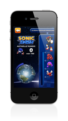 LONDON & SAN FRANCISCO, 18. Juli 2013: SEGA® Europe, Ltd. und SEGA® of America, Inc. starten heute die erste „Global Challenge“ für Sonic Dash, dem erfolgreichen Endless Runner rund um Sonic The Hedgehog und seine Freunde. Gemeinsam können die Spieler weltweit neue Inhalte erspielen. Die Aufgabe: 100 Weltumrundungen bis zum Ende der Herausforderung am 5. August 2013. Dabei wird jeder individuelle Lauf berücksichtigt und zur Berechnung der zurückgelegten Gesamtstrecke herangezogen. Alle Teilnehmer erhalten zum Abschluss mit Shadow the Hedgehog einen neuen spielbaren Charakter – sofern die Herausforderung erfolgreich abgeschlossen wird.