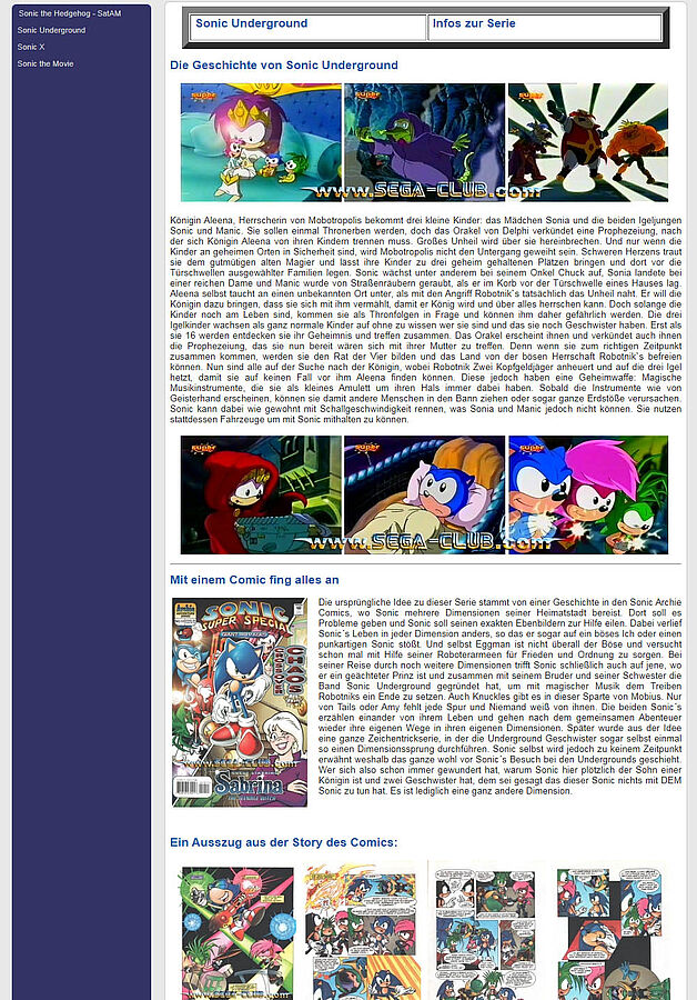 Hinter den verschlossenen Türen der Subdomain ‚sonic.sega-club.com‘ entstand im Jahr 2008 die erste Version dessen, was wir schlicht „SONIC Site“ nannten. Das Design, für das sich vor allem Tanja (Tikal) verantwortlich zeichnete, orientierte sich eng am SEGA-Club – inklusive eines markanten Headers mit Sonic. Auch die Info-Box, wie wir sie stets nannten, zeigte den blauen Igel. Die Seite wirkte wie das natürliche Gegenstück zum SEGA Club, der damals von Shadow the Hedgehog geprägt wurde.