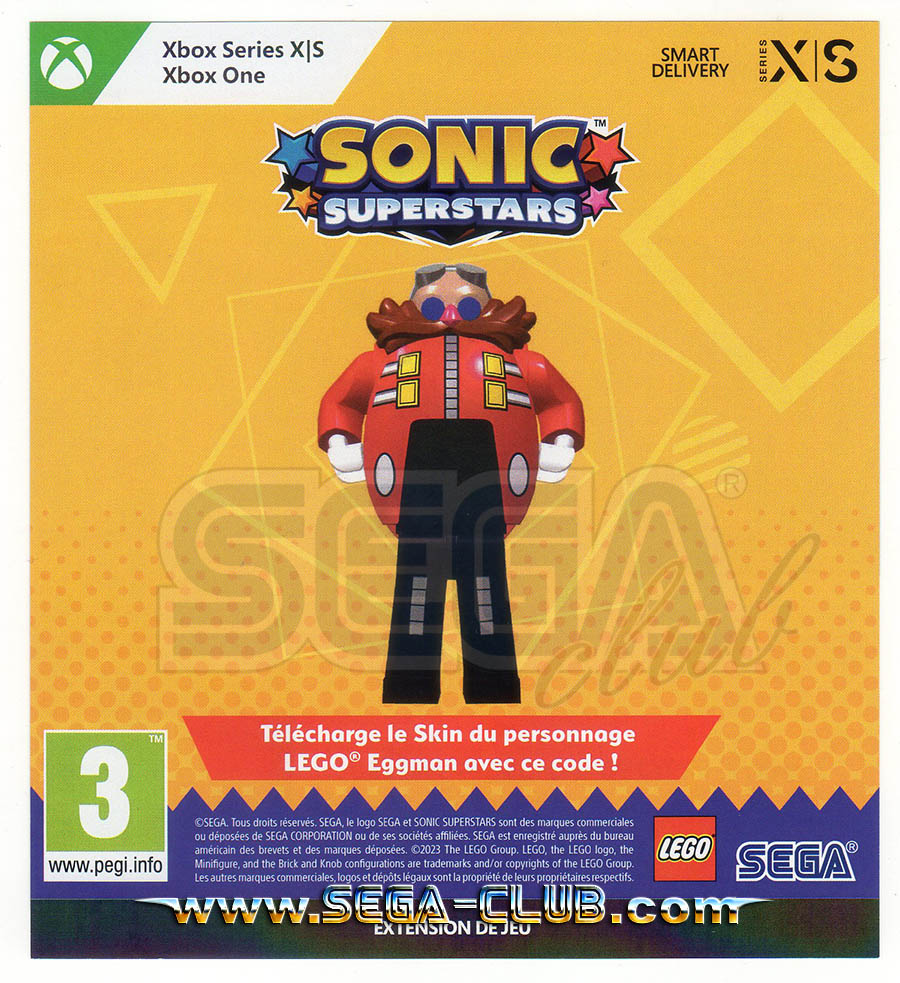 | Kostenlose DLCs | LEGO-Skin Eggman LEGO-Look für Dr. Robotnik bei Vorbestellung bzw. in der physischen Version durch beiliegendem Download-Code LEGO-Skin für Sonic LEGO-Look Kostüm: Festlicher Sonic Weihnachts-Look Shadow-Kostüm für Sonic Shadow the Hedgehog-Look |
